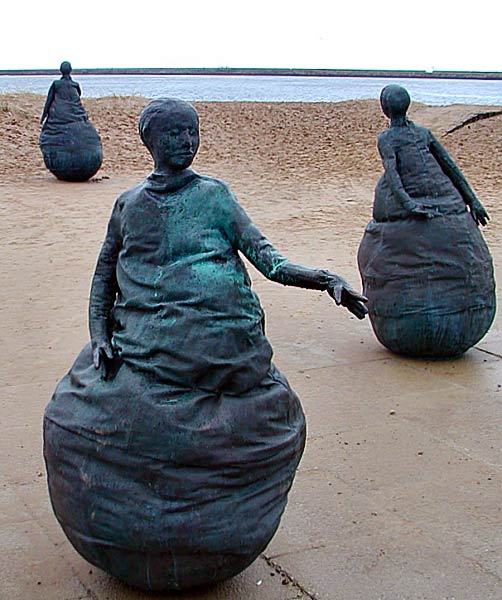 'Conversation Piece' by Juan Munoz on the sea front at South Shields, England.